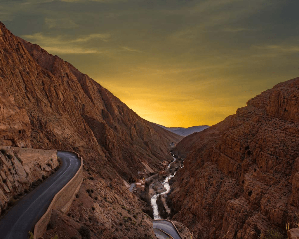 En el camino de regreso, sigue la legendaria “Ruta de las 1.000 Kasbahs” y haz una parada en Tinghir para explorar las espectaculares gargantas del Todgha. Continúa por el Valle de las Rosas y los palmerales del oasis de Skoura antes de regresar a Marrakech.